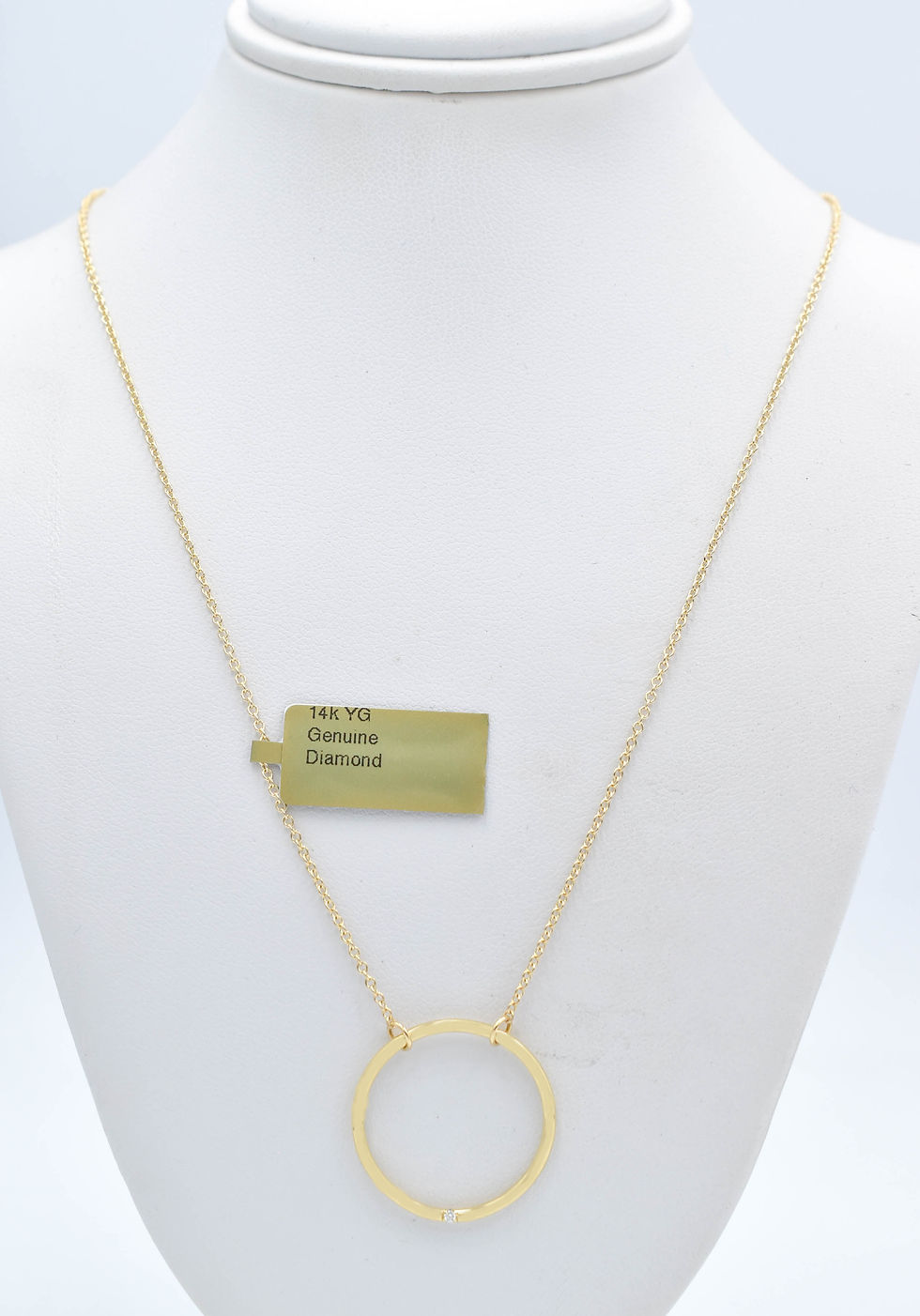 GENUINE DIAMOND KARMA CIRCLE NECKLACE 14K SOLID YELLOW GOLD