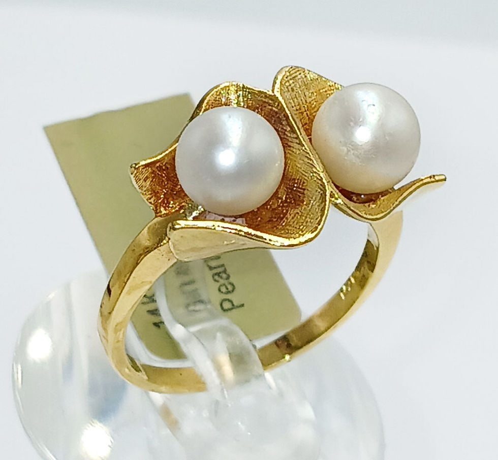 Genuine Pearls Ladies Ring 14k Solid Yellow Gold