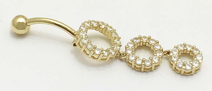 3 White Sapphire Rings Reverse 14k YG Belly Ring