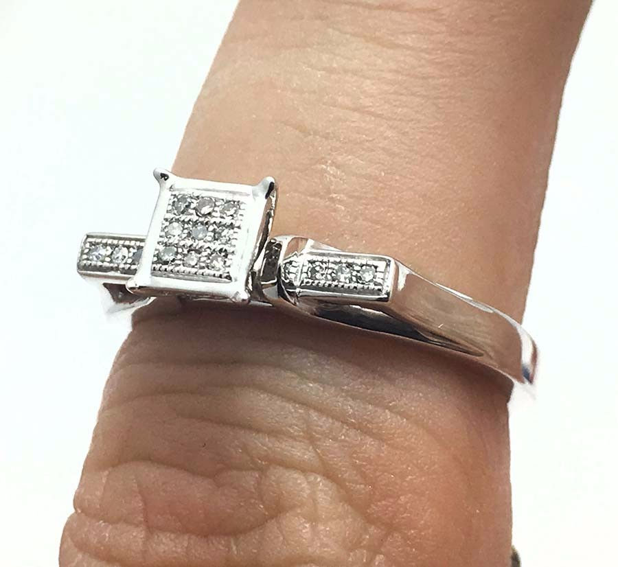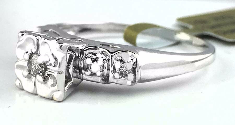 Vintage Design Genuine Diamonds Engagement Ring 10k White Gold