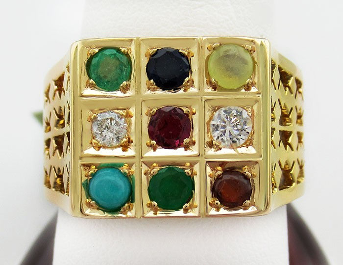 Genuine Multi-Gemstones Men'S Ring 14K Yellow Gold