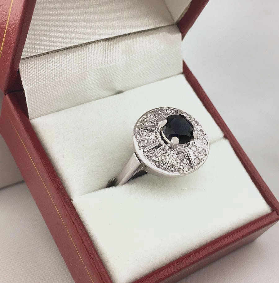 GENUINE 1.23 Cts BLUE SAPPHIRE & DIAMOND RING 10K WHITE GOLD