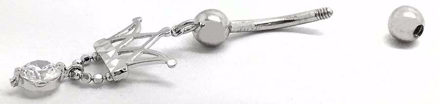 White Sapphire "Crown" Solid 14k White Gold Navel Belly Ring