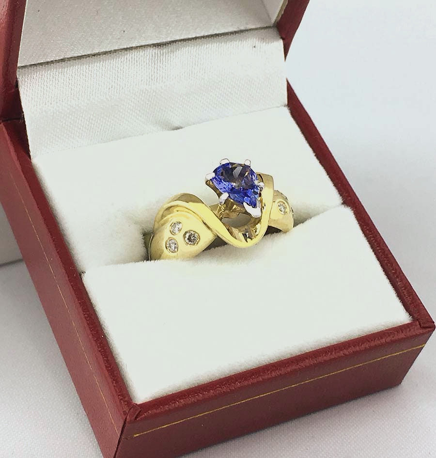 Natural 1.30 Carats Tanzanite Ring 14k Yellow Gold