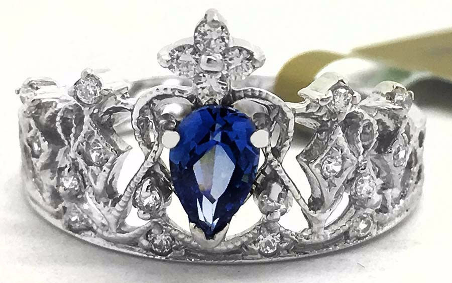 Tanzanite 0.68 Cts & White Sapphires Crown Ring 14k White Gold